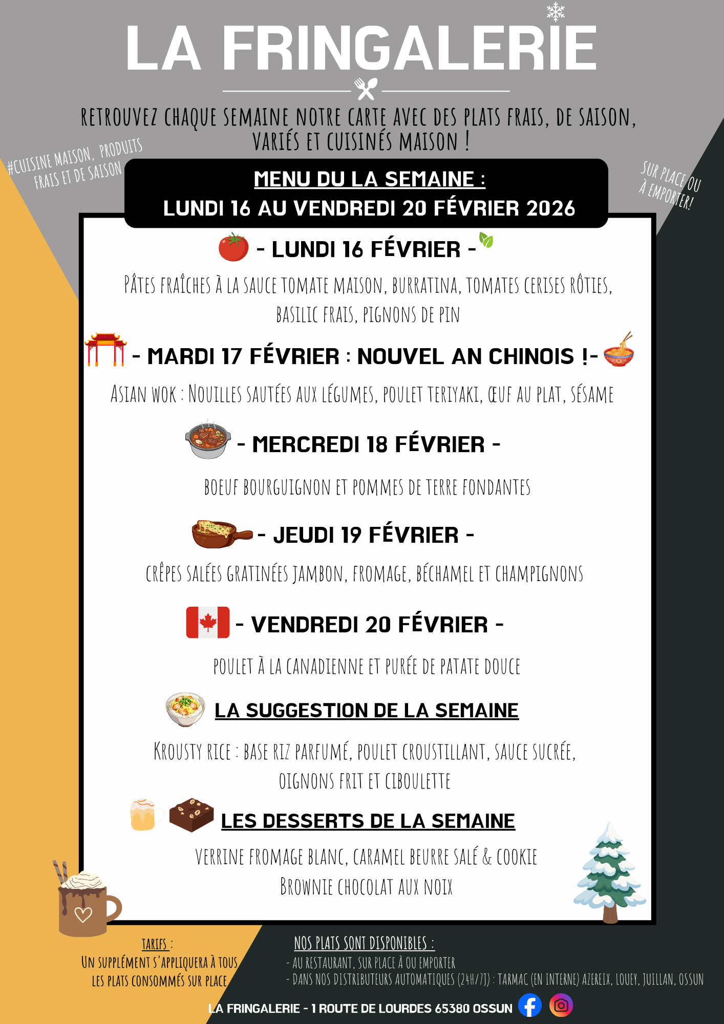 🍴 Menu du 16 au 20 février